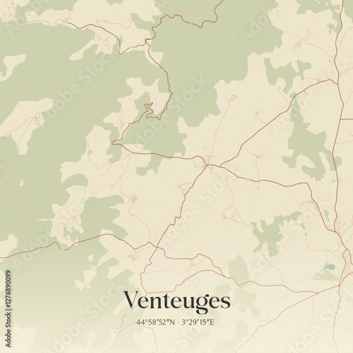 Obraz premium Vintage map of Venteuges, France.