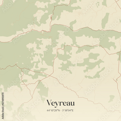 © Rezona, Obraz premium Vintage map of Veyreau, France.