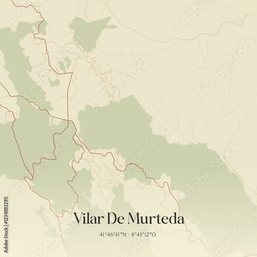 © Rezona, Fototapeta premium Vintage map of Vilar De Murteda, Portugal.