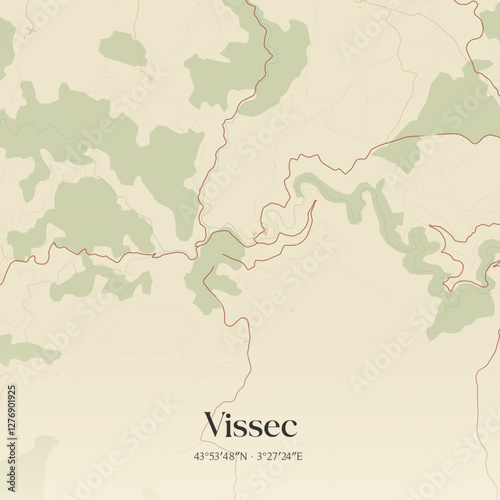 © Rezona, Obraz premium Vintage map of Vissec, France.