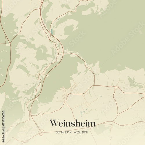 © Rezona, Fototapeta premium Vintage map of Weinsheim, Germany.