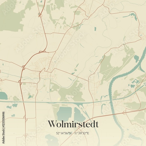 © Rezona, Obraz premium Vintage map of Wolmirstedt, Germany.