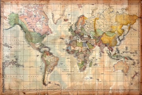 © Rawpixel.com, Naklejka premium Vintage map world backgrounds topography.