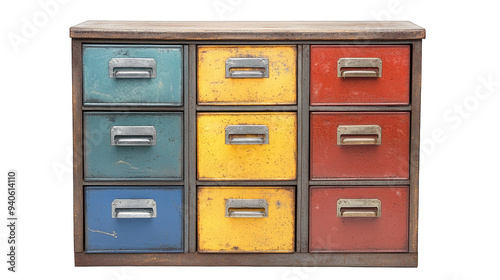 Fototapeta premium Vintage Metal Cabinet with Colorful Drawers