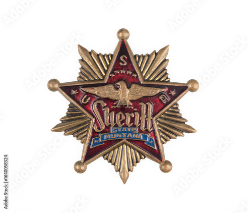 © serikbaib, Obraz premium vintage metal sheriff marshal badge isolated