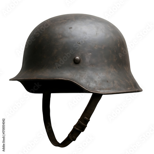 © IMRAN, Fototapeta premium Vintage Military Helmet Isolated on White Background