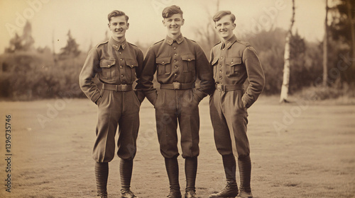 © NNS Studio, Fototapeta premium Vintage Military Portrait: Historical Black and White Photo of WWI Soldiers in Uniform