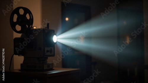© MF Studio, Fototapeta premium Vintage 8mm Film Projector Shining Bright Light, Antique Movie Technology