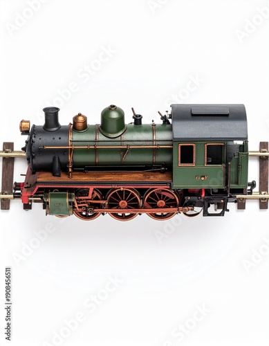 Fototapeta premium Vintage Model Train Engine on White Background for Hobby and Collection Concepts.