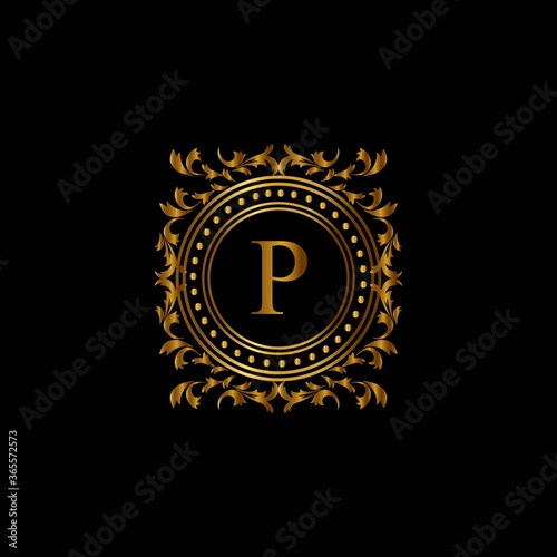 Fototapeta premium Vintage monograms P letter. Golden heraldic letter logos