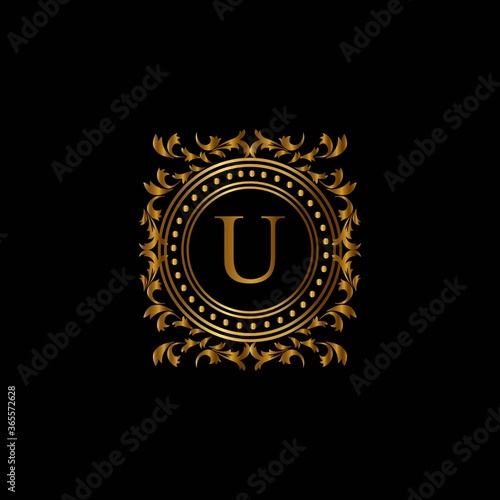 Naklejka premium Vintage monograms U letter. Golden heraldic letter logos