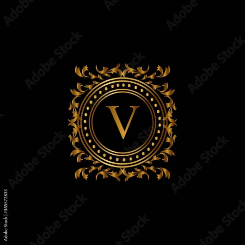 © SStudio, Naklejka premium Vintage monograms V letter. Golden heraldic letter logos