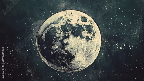 © Thiago, Fototapeta premium Vintage moon. Cosmic Etching. Illustration