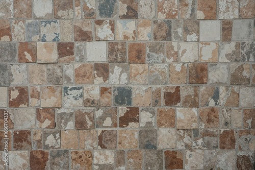 © vxnaghiyev, Fototapeta premium Vintage mosaic pattern embedded in cement over a concrete backdrop
