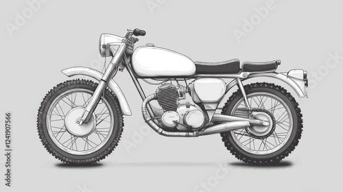 Fototapeta premium Vintage motorcycle side view, studio shot, off-road tires, gray background, for automotive articles