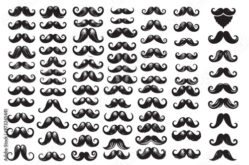 © Graphic, Fototapeta premium Vintage mustache, funny fake mustaches mask and retro curly moustaches
