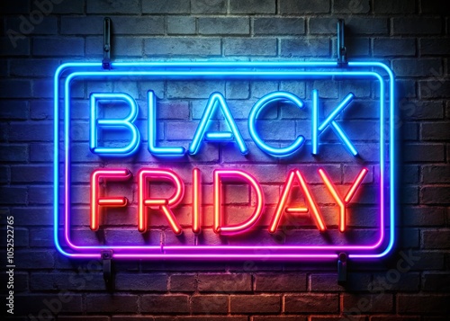 © Arnada, Obraz premium Vintage Neon Black Friday Sign with Bulbs for Festive Shopping Atmosphere