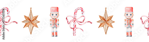 Fototapeta premium Vintage Nutcracker Christmas Border with Candy Canes and Stars