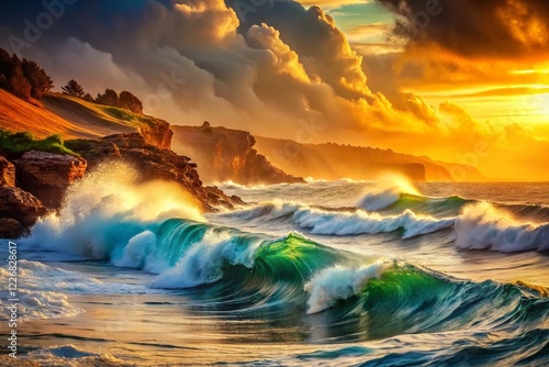 © Kaveepat, Fototapeta premium Vintage Ocean Waves - Dramatic Seascape