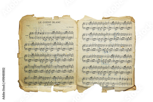 Obraz premium Vintage old music notes paper of Heinrich Tellam (1854-1940) isolated on white