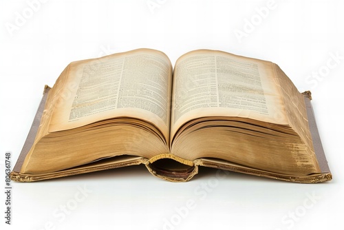 © Sandu, Fototapeta premium Vintage Open Book on White Background, Elegant Old Text