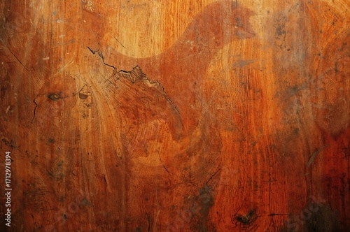 © vxnaghiyev, Fototapeta premium Vintage orange wood texture pattern background with abstract design and natural elements