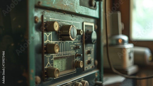 Fototapeta premium Vintage oscilloscope on a workbench with knobs and dials