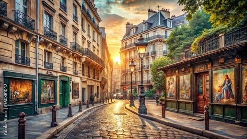 Fototapeta premium Vintage Parisian street romantic charming old posters classic elegant...