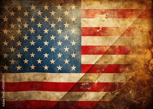 © Danicha, Naklejka premium Vintage Patriotic Background: Grunge American Flag Design with Text Space for Holiday Greetings