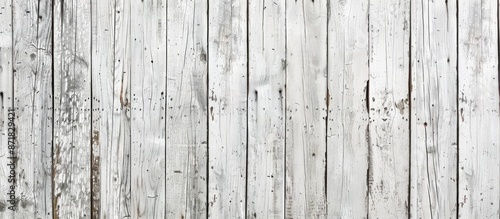 Fototapeta premium Vintage pattern layout of white aged wooden planks as a background for retro, grunge, and creative projects in construction, architecture, and interior design with copy space image.
