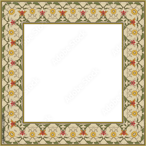 Fototapeta premium Vintage pattern stylish square frame botanic garden plant flower leaf