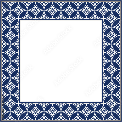 © Phoebe Yu, Obraz premium Vintage pattern stylish square frame circle cross line flower