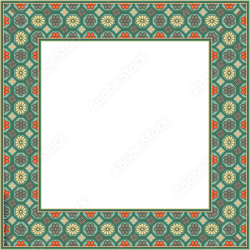 © Phoebe Yu, Fototapeta premium Vintage pattern stylish square frame polygon cross tracery flower