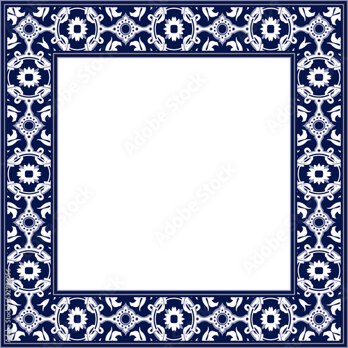 © Phoebe Yu, Obraz premium Vintage pattern stylish square frame retro blue botanic garden spiral cross flower leaf