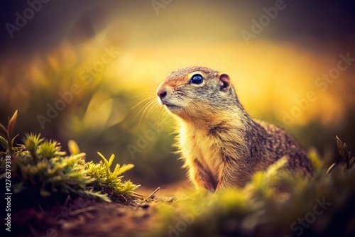 © prapatsorn, Naklejka premium Vintage Photo: European Ground Squirrel in its Habitat - Retro Wildlife Image