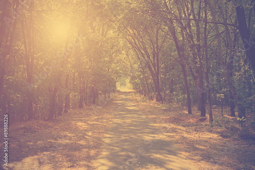 © SasaStock, Naklejka premium Vintage photo of autumn forest