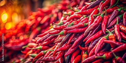 © Man888, Fototapeta premium Vintage Photo: Vibrant Red Chili Pepper Slices Cascade - Culinary Still Life