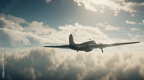 © SZ Photos, Obraz premium vintage plane flying above cloudy sky. Generative AI