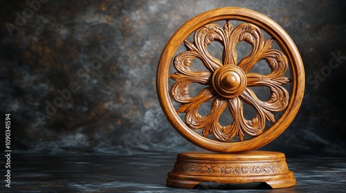 © SakdaSong, Obraz premium Vintage Polished Wooden Spinning Wheel - Hyper Realistic 3D Illustration