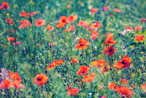 © vvvita, Obraz premium Vintage poppies field