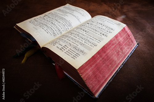 © 31etc, Fototapeta premium Vintage psalm book with chorus singing notes