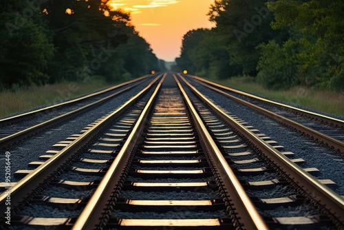 Fototapeta premium Vintage Railway Tracks Illuminated by Sunset Serenity