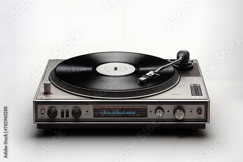 Fototapeta premium Vintage Record Player on Clean White Background: Retro Music Nostalgia