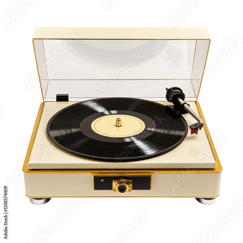 © premium content, Fototapeta premium Vintage Record Player Retro Audio on transparent background.