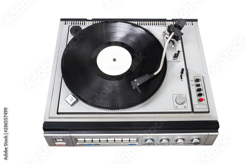 © mars58, Obraz premium Vintage record player with radio tuner on white background
