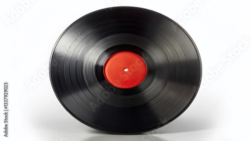 Obraz premium Vintage Red Label Vinyl Record, Retro Music, Isolated on White Background,...