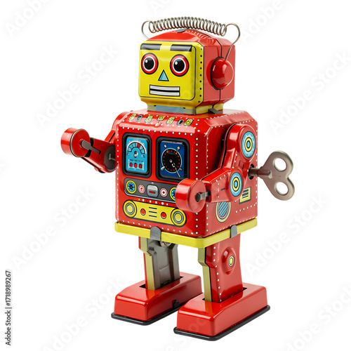 © Png, Fototapeta premium Vintage Red Robot Toy: Classic Tin Wind-Up Mechanical Toy Robot