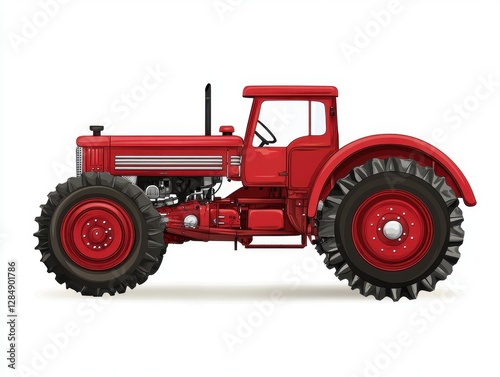 Obraz premium Vintage Red Tractor Illustration on White Background