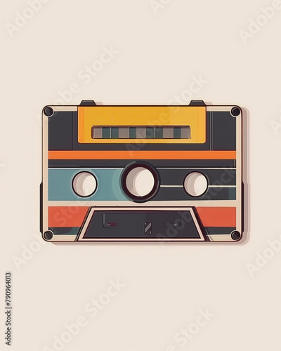 © @foxfotoco, Naklejka premium Vintage Retro Audio Cassette Tape on Monochrome Pastel Background