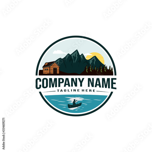 Fototapeta premium Vintage retro cabin, outdoor adventure illustration logo